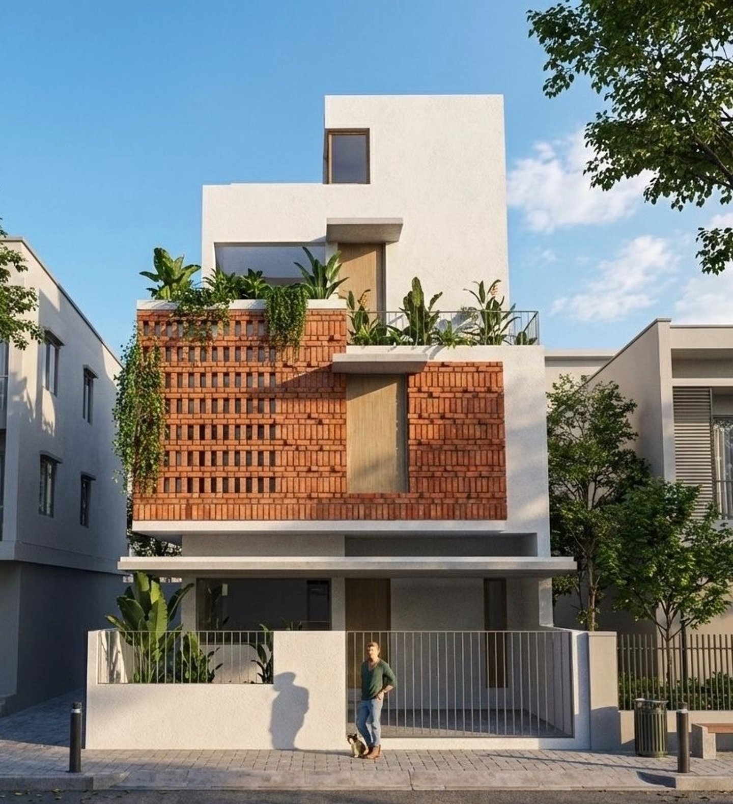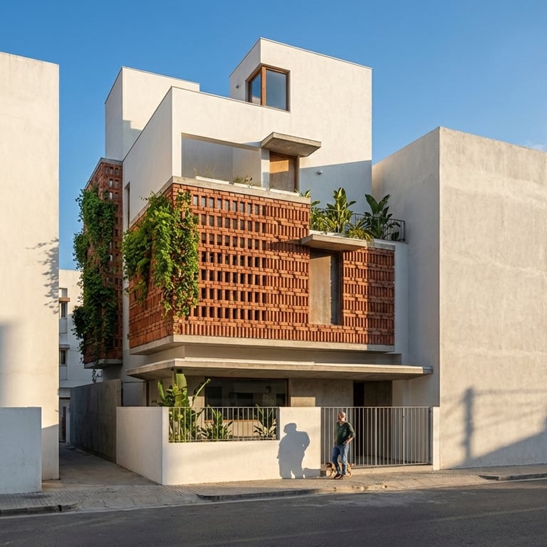 This house is designed on a compact 25’ × 50’ plot for a retired couple, located in a dense residential context and a harsh tropical climate with summer temperatures reaching up to 45°C. The design focuses on creating a climate-responsive home that maximizes daylight, ventilation, and comfort despite the tight surroundings.